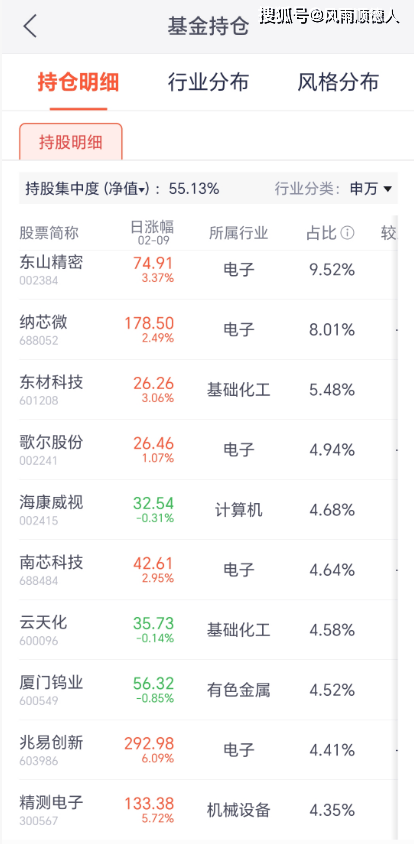 该基金十大持仓中东山精密、东材科技、兆易创新、精测电子涨幅较大,前十持仓占总持仓的55.13%,可是没有一个已公开持仓涨幅过9%,很明显这个基金目前仓位并不是2025年四季报的持仓,按第三与第五基金风格看,当前属于CPO题材,基金风格已发生转移。基金净值相对跑赢市场(属于成长型的主动型混合基金,但当前仓位与展示仓位已经不一样了,当然也不知道以后仓位会固定还是继续转向)【基金规模0.57亿元】。净值增长较差的是汇添富积极回报一年持有混合(FOF)C,